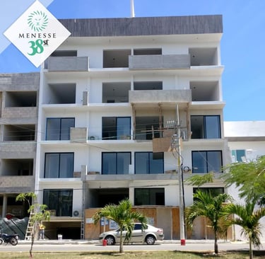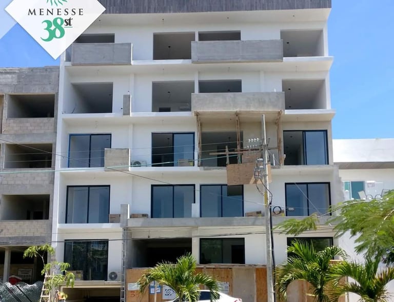 This building, constructed between 2018 and 2020, went online in 2021. There are two units both situated on the first floor (above Piso Bajo), which is above street level. These units have unobstructed views of the scenic 38th Street, which is a tree lined split road, and saved from sounds with the thick soundproof glass. There are terrazas on each unit overlooking the road, with a full height balcony glass door.